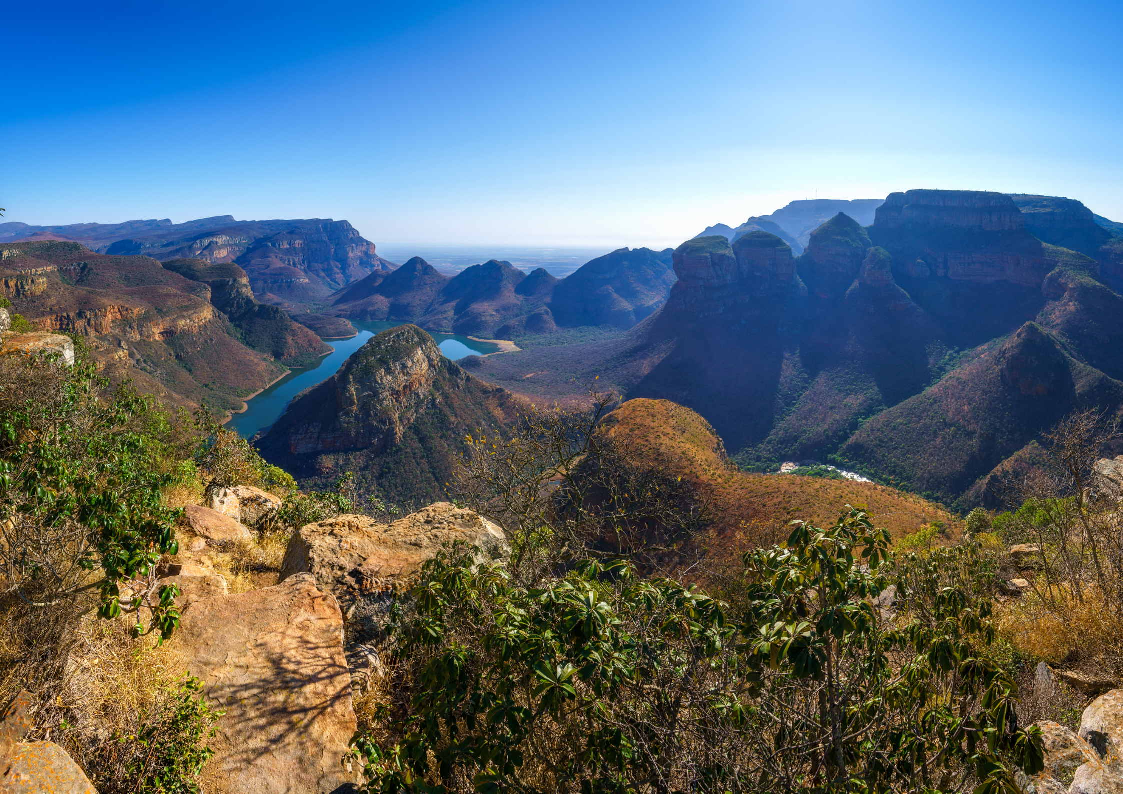 Just beyond Kruger’s gates, the adventure keeps going. The Panorama Route winds through misty mountains, lush forests, and sheer cliffs — highlights include God’s Window and the majestic Blyde River Canyon. Hike hidden trails to waterfalls, drift along Blyde Dam with hippos and crocs nearby, or take in the view from a hot air balloon or helicopter.